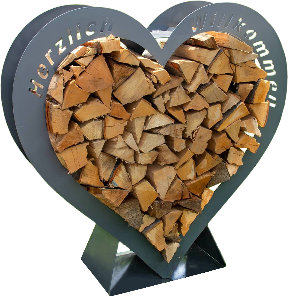 Stabiles Design-Highlight in Herzform – vereint Ästhetik und Funktion für stilvolle Holzlagerung