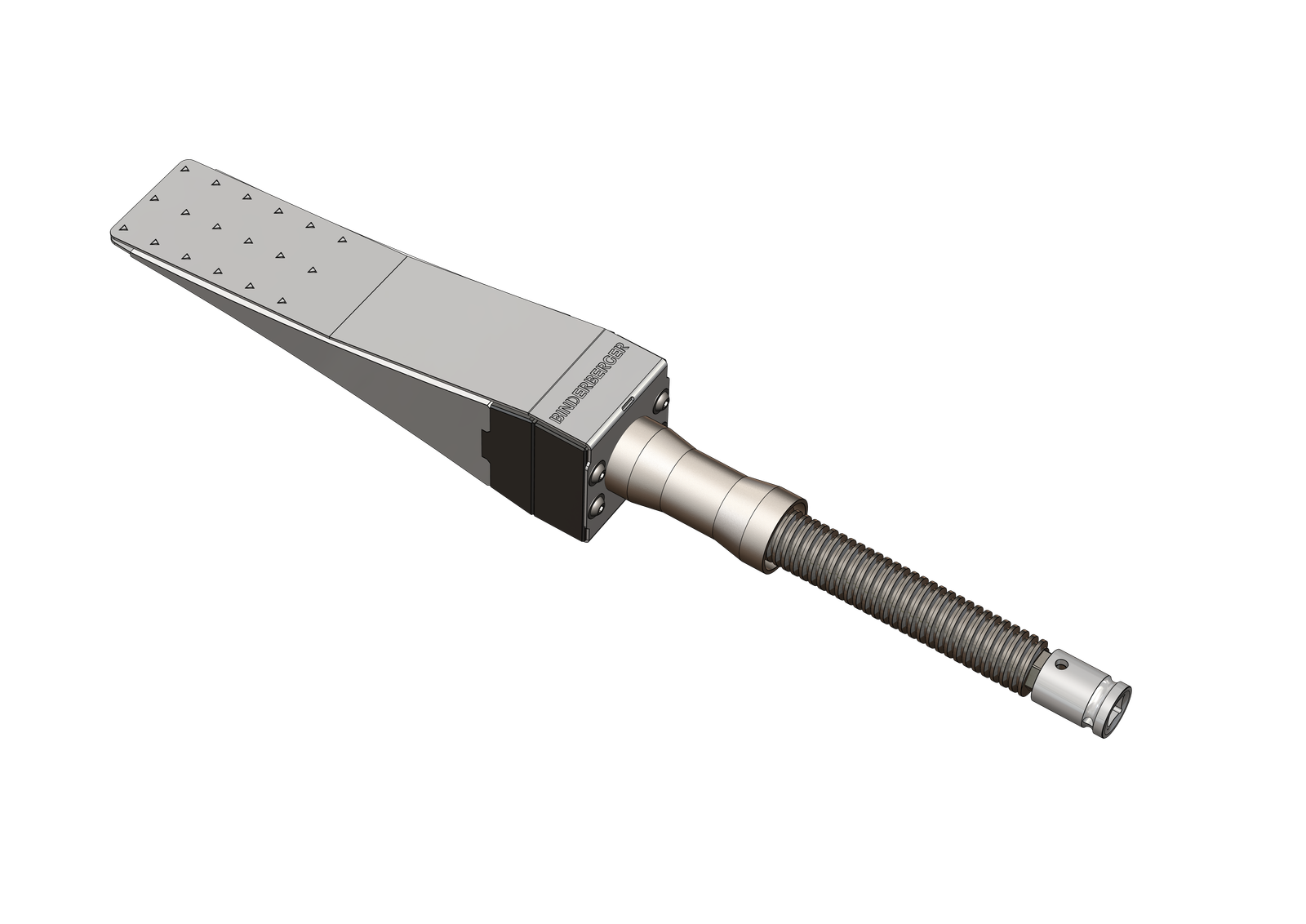 Ein besonderes Highlight ist das Widerhaken-Blech, das in einem Stück geformt ist – es garantiert eine formschlüssige Verbindung, entlastet die Schrauben, bietet maximale Stabilität und trägt entscheidend zu einer langen Lebensdauer bei. Die spitzen Widerhaken garantieren einen Sicheren halt im Holz und verhindern, dass der Keil sich selbst rausschiebt. Die flache Konstruktion an der Spitze ermöglicht ein einstecken des Keils auch bei einem sehr flachen Motorsägenschnitt.