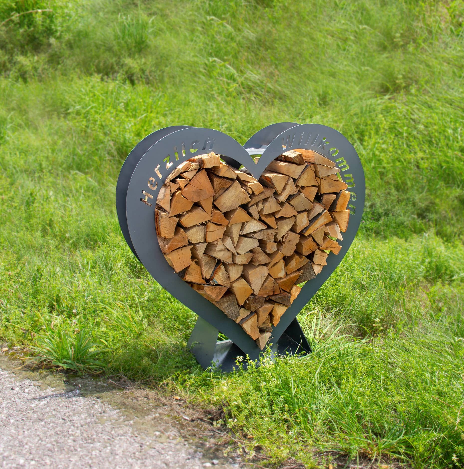 Verleihen Sie Ihrem Garten, Ihrer Terrasse oder Ihrem Wohnzimmer eine besondere Note mit unserem stilvollen Holzlager in Herzform aus robustem Metall. Dieses formschöne Metall-Herzregal ist nicht nur ein praktischer Aufbewahrungsort für Kaminholz oder Grillholz, sondern auch ein echtes Design-Highlight.