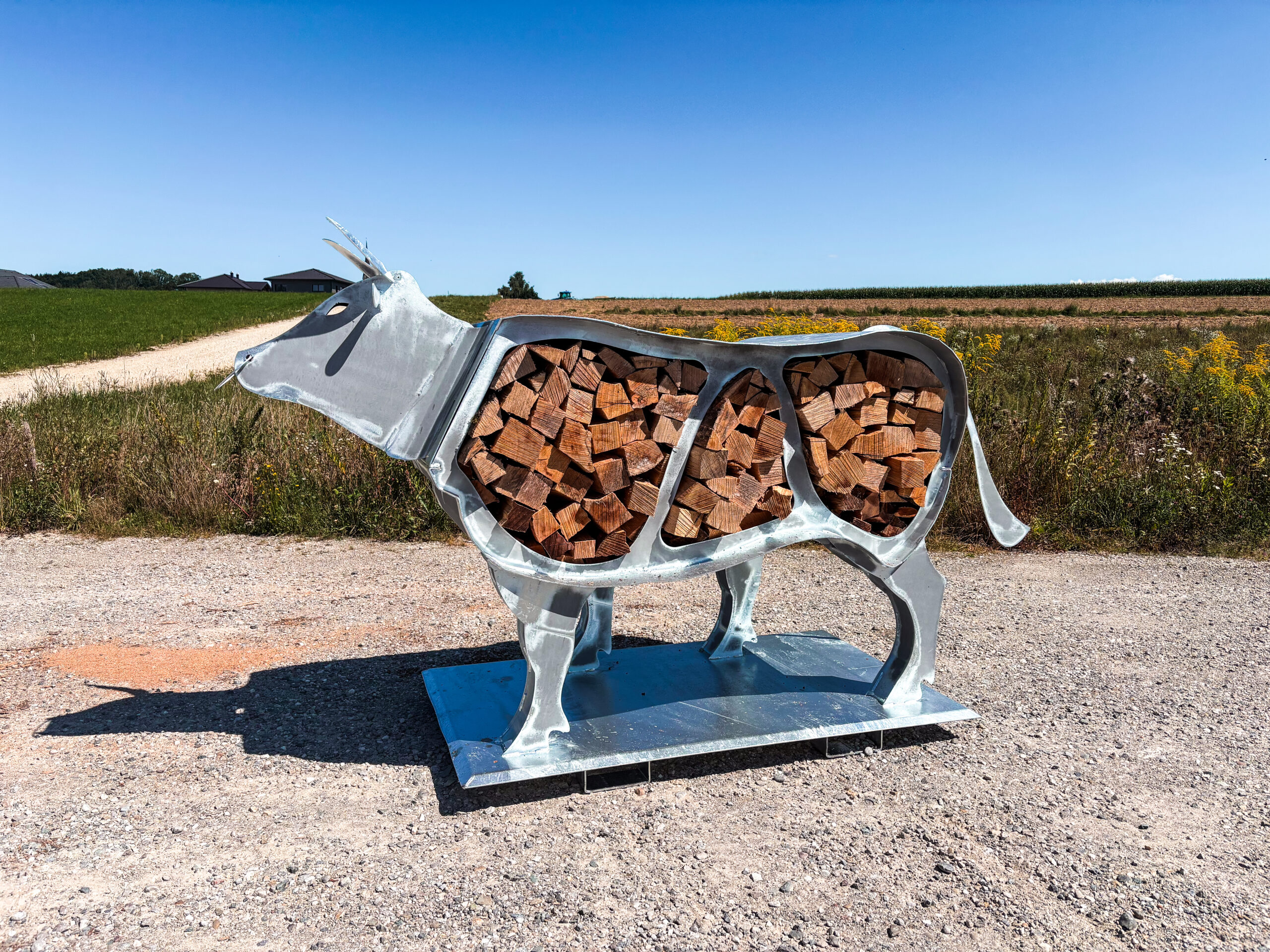 Lagere dein Brennholz stilvoll und eindrucksvoll: Unser Holzlager in Form eines Stieres vereint Funktionalität und rustikale Eleganz. Die massive Metallkonstruktion ist nicht nur ein praktischer Aufbewahrungsort für Kaminholz, sondern gleichzeitig ein kraftvolles Dekoobjekt für Hof, Garten oder Einfahrt.
