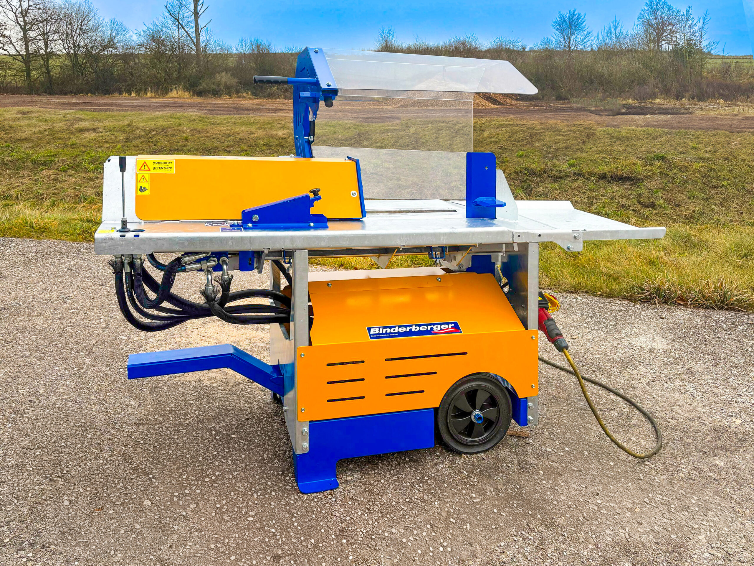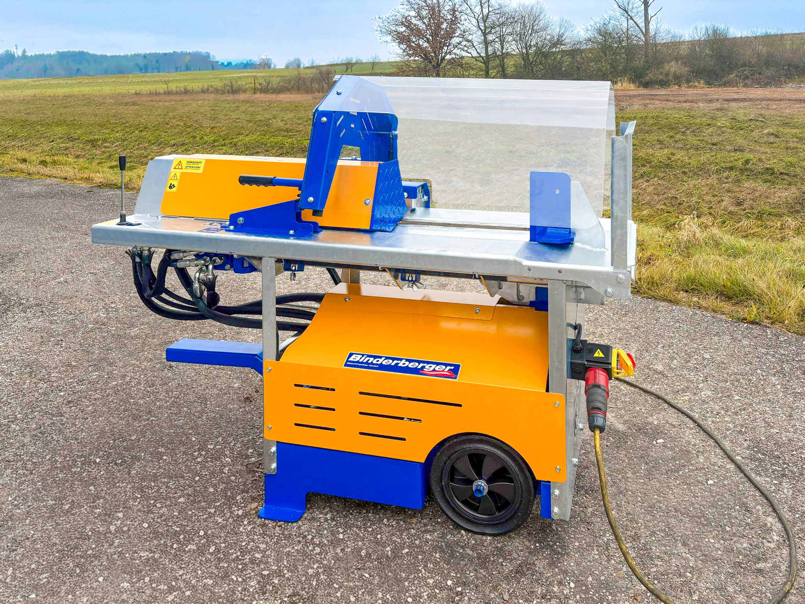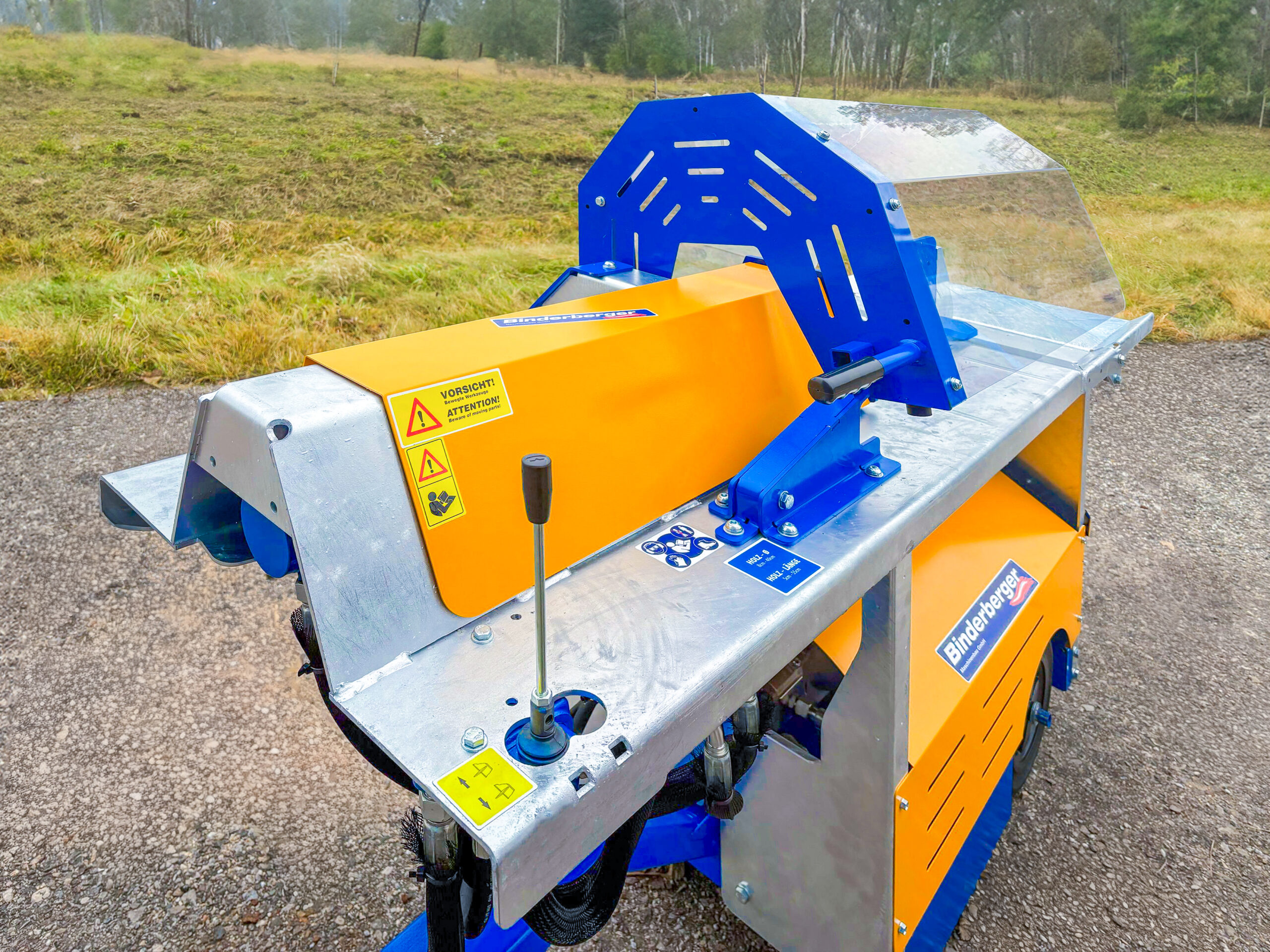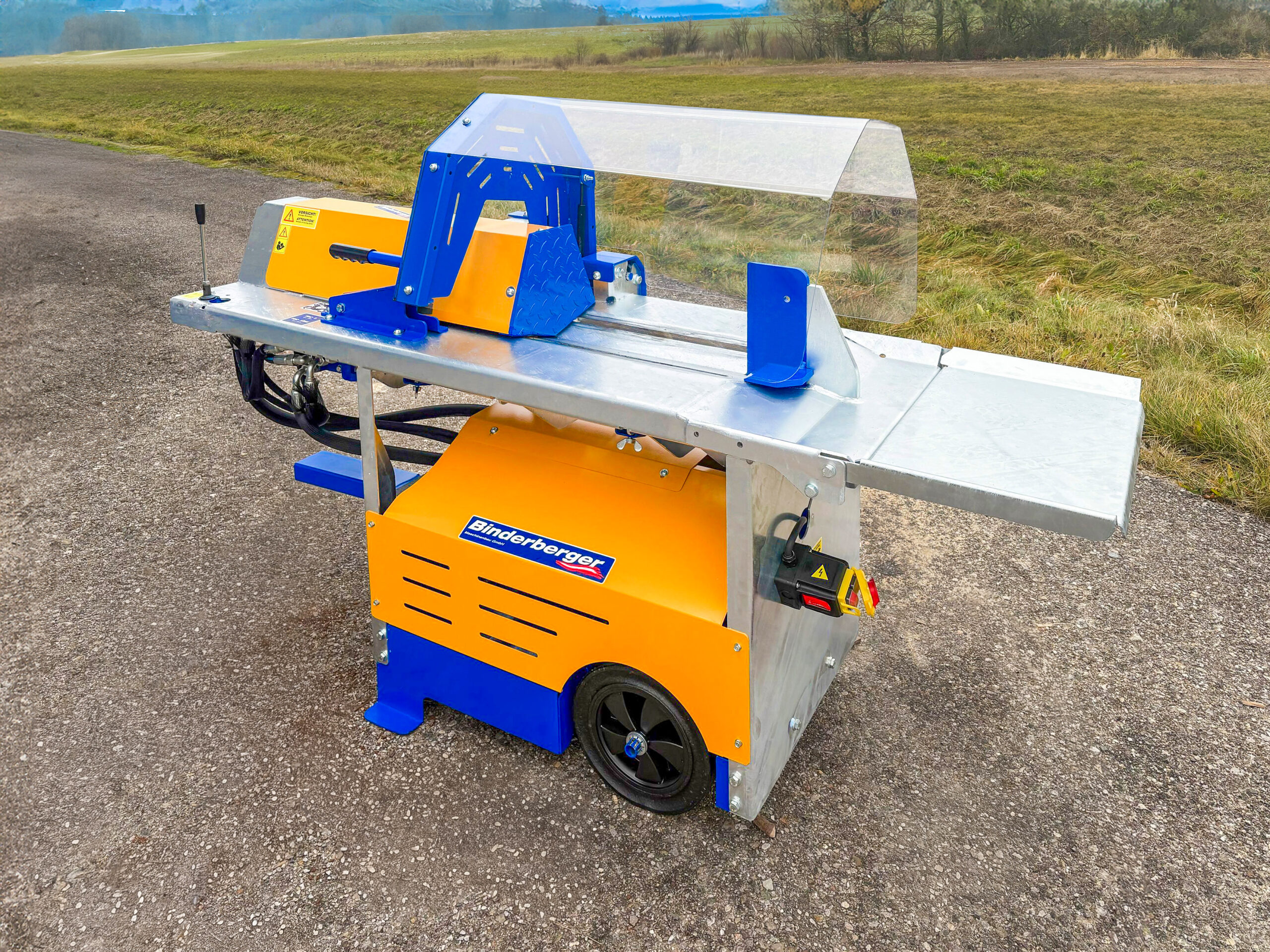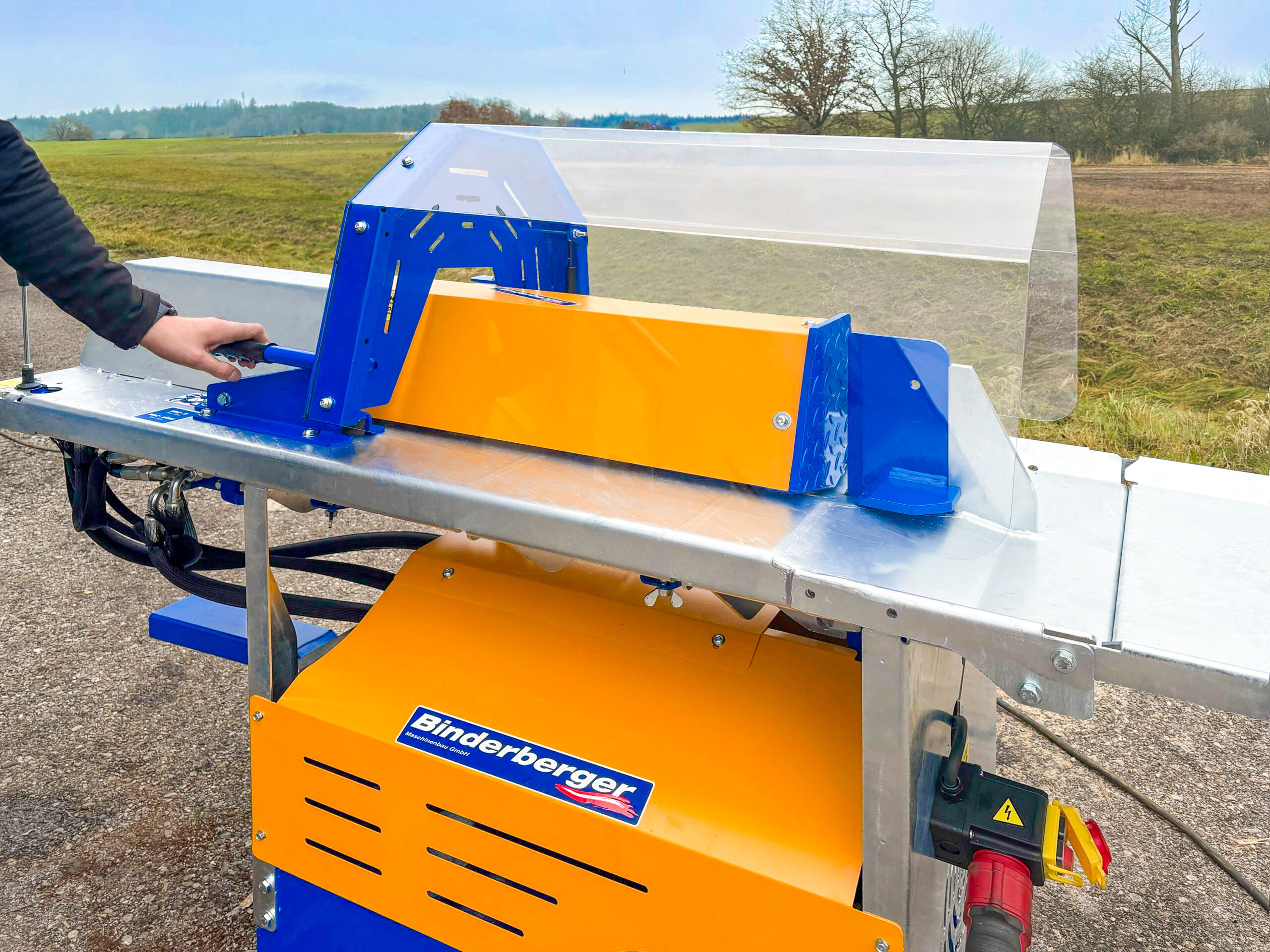 Ein zentrales Merkmal des Binderberger SP8 Plus ist das hohe Sicherheitsniveau. Die stabile Schutzhaube schützt den Anwender zuverlässig während des Spaltvorgangs. Zusätzlich garantiert die integrierte V-Form am Grundgestell eine sichere Holzführung, wodurch das Verrutschen des Holzes effektiv verhindert wird.
