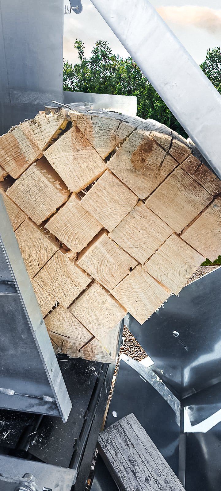 Denn mit unserem SSPX 800 können Sie einen Stamm von bis zu Ø80cm auf die von Ihnen gewünschte Größe zuschneiden. Anschließend werden die gesägten Stammabschnitte mit einem Übergabeband reibungslos zur Spalteinheit transportiert. Mithilfe der 16t Spaltkraft und einem 2-stufigem X-Messer spaltet unser Maschine Ihre Stämme zu handlichem Brennholz – und das mit einem Spaltzyklus von 14/min und noch dazu vollautomatisch! Ein weiterer Vorteil ist, dass sich die Größe der Holzscheite mittels 8 verschiedener Stufen zwischen 3 und 10 cm einstellen lässt. Des Weiteren können Sie die Scheitlänge stufenlos zwischen 20 und 50cm regulieren. Mit anderen Worten, unser SSPX 800 ist der perfekte Partner für die kraftschonende und produktive Herstellung von Anzünd- und Brennholz.