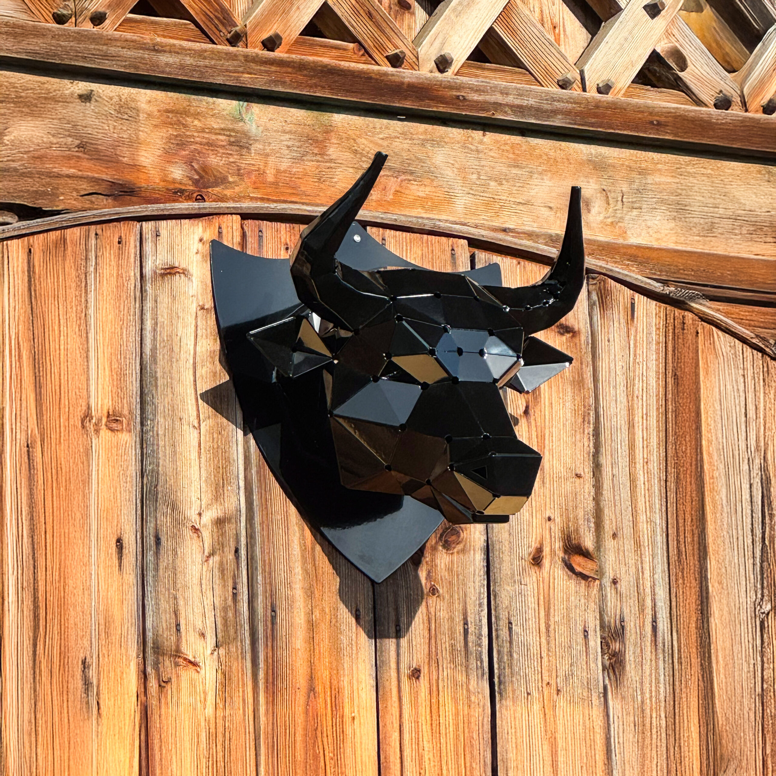 Ob im Wohnbereich, im Büro, in der Werkstatt oder in der Gastronomie – dieser Metall-Stierkopf zieht garantiert alle Blicke auf sich. Auch als eindrucksvolle Wanddekoration an der Fassade eines Hofes, eines landwirtschaftlichen Betriebs oder eines Firmengebäudes setzt er ein starkes Statement. Der Stier steht symbolisch für Stärke, Durchsetzungskraft und Beständigkeit und verleiht jedem Innen- und Außenbereich eine kraftvolle Ausstrahlung. Dank seiner klaren Linienführung harmoniert der Stierkopf sowohl mit modernen als auch mit industriellen Einrichtungsstilen.
